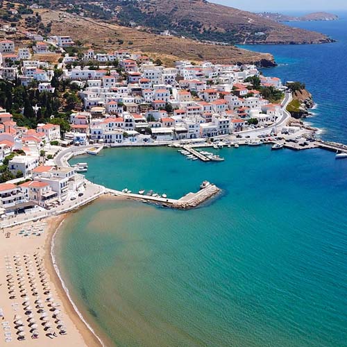 Korthi is a picturesque coastal village located on the southeastern coast of Andros Island in Greece. Tucked away in a tranquil bay surrounded by rolling hills and olive groves, Korthi exudes a serene ambiance that appeals to travelers seeking a peaceful retreat.